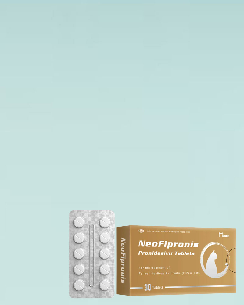 GS-441524 is a nucleoside analog antiviral that inhibits the replication of feline coronavirus and is widely used as a core treatment approach for FIP. NeoFipronis® provides GS-441524 in 30mg scored oral tablets for practical, accurate dosing and convenient long-term administration.